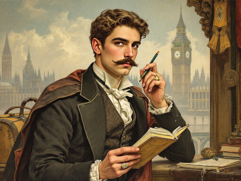 Me voici donc prêt pour ce voyage à Londres, équipé comme à mon habitude de mes carnets et de mes crayons. La chevalière familiale, comme toujours, brille à mon doigt – je ne la quitte jamais. J’ai hâte de retrouver mes amis pour cette excursion qui promet d’être fort intéressante. En tant que journaliste, je ne peux m’empêcher d’espérer que ce séjour me fournira quelque matière à écrire.