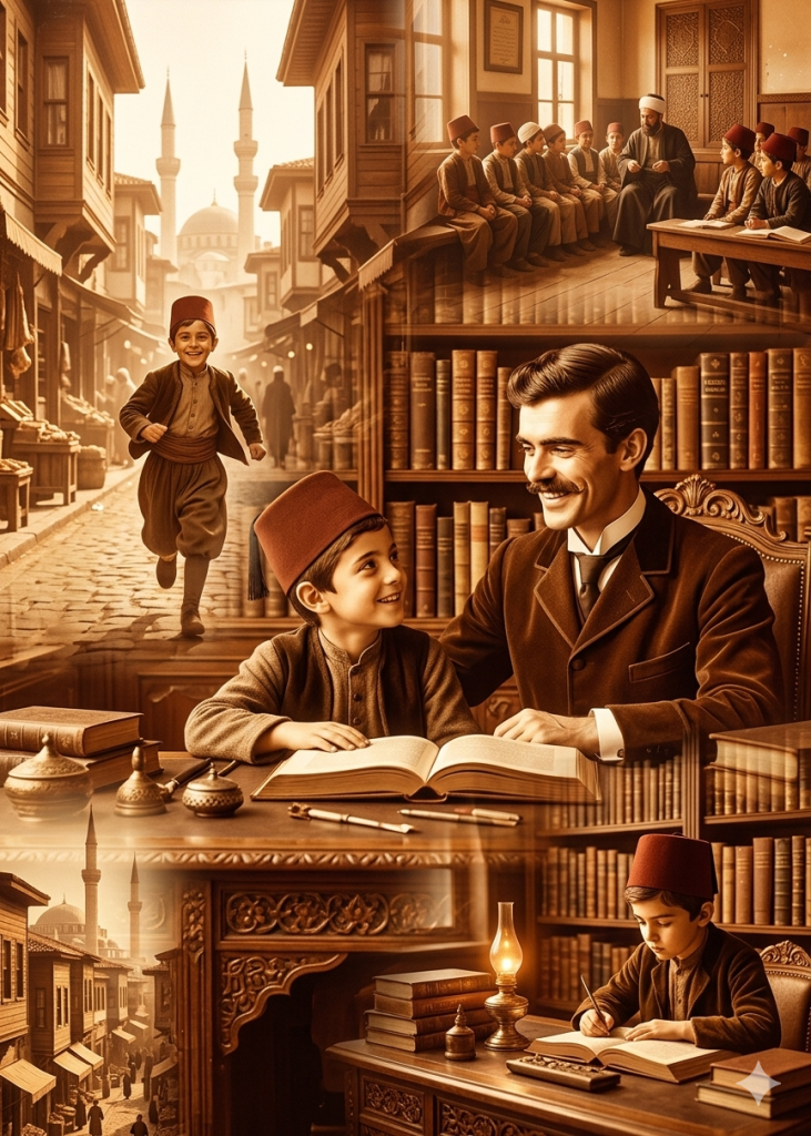 Ahmed est apparu plus tard, au moment où je terminais le helva. Un grand homme, alors, je dis alors, parce qu’avec le temps il me semblerait moins grand, mais ce premier jour il occupait la pièce de toute sa carrure, sa moustache fournie, son tarbouche posé droit, sa robe de chambre damassée portée avec ce naturel des hommes qui ne posent jamais. Il m’a observé un long moment sans rien dire. Puis il s’est assis face à moi, et il m’a posé trois questions en turc dans cet idiome châtié des classes lettrées, trois questions très simples sur mon nom, sur mon âge et sur l’endroit où je dormais. J’ai répondu. Je n’ai pas menti, je n’avais pas envie de mentir, ce qui était déjà une nouveauté pour moi, qui mentais d’instinct à tout adulte qui m’adressait la parole. Il a écouté avec cette gravité qu’il mettait aux choses importantes, et il a fini par hocher la tête en disant simplement bien, un seul mot, iyi, qui dans sa bouche pesait plus qu’un long discours.