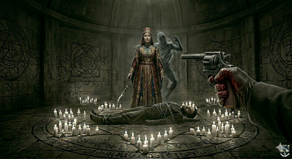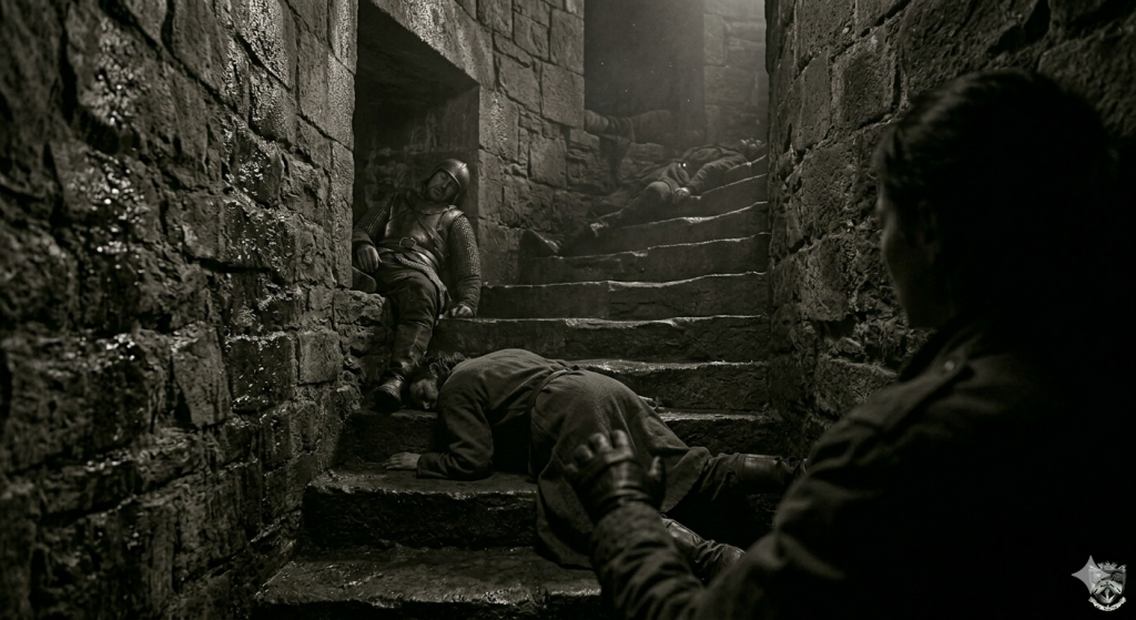 La détonation fut absorbée par la crypte avec une façon particulière — les espaces fermés ont leurs acoustiques propres, leurs façons de traiter les sons violents, et celui de la crypte transformait le coup de feu en quelque chose de sourd, d’étouffé, comme si les pierres elles-mêmes avaient voulu contenir ce son. Le corps du Prince s’effondra sur la pierre. Avant que la lame ne boive son sang.