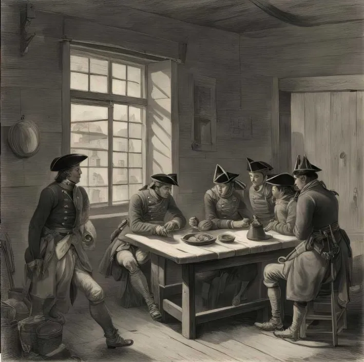 À l’angle d’une ruelle étroite, nous découvrons une petite gargote. Une pancarte délavée oscillait doucement sous l’effet du vent : « La Soupière ». Sans autre choix, nous pénétrons dans l’établissement. L’intérieur était tout aussi austère que l’extérieur. Des bancs en bois, un comptoir usé par le temps, et une odeur persistante de chou bouilli. Le tavernier, un homme trapu et taciturne, nous sert une soupe de choux, maigre mais chaude. Un pichet de vin accompagne le tout, et nous nous installons à une table en retrait.