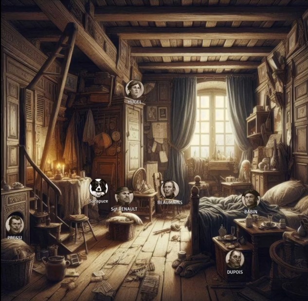 À bout de forces mais poussé par une volonté farouche, il arrache les rouleaux de leur cachette, les serre contre lui. Les pas des soldats se rapprochent, chaque bruit de botte résonnant comme un glas. Et pourtant, nous parvenons à nous engouffrer dans une ruelle parallèle, disparaissant dans les ombres, alors que Babin rejoint nos rangs, haletant mais victorieux.